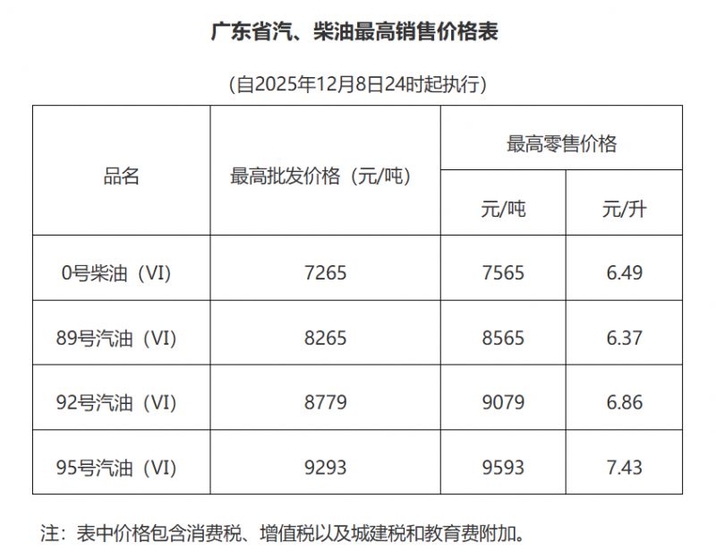 【导语】:根据广东省发改委公布的最新消息,自2025年12月8日24时起,92号汽油参考价为6.86元/升。实际以加油站为准。